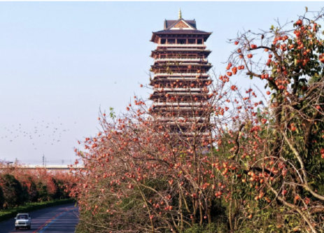 潁上:柿子滿枝映深秋 街頭美景引客來